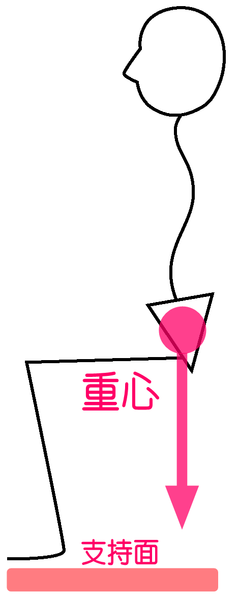 他にも、バランスが良い悪いというのがありますが、バランスが良いということは、重心が必ず体を支えている範囲内におさまっているということです。
